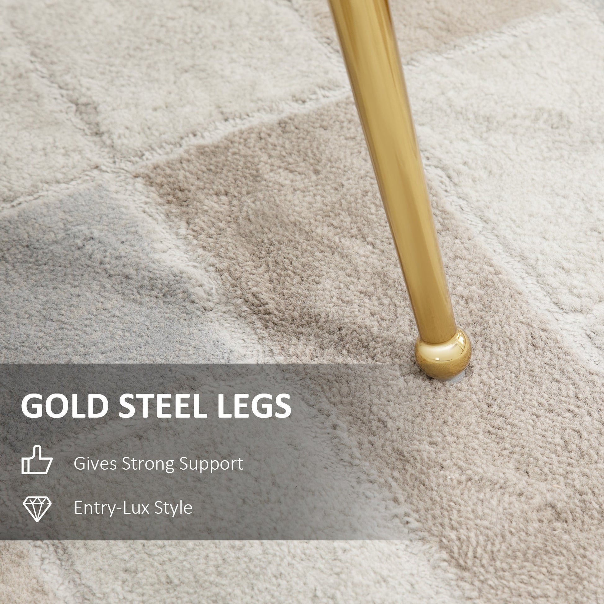 - Shell-shaped back works beautifully with velvet-feel fabric and gold tone legs